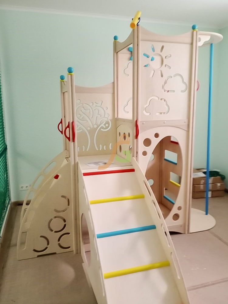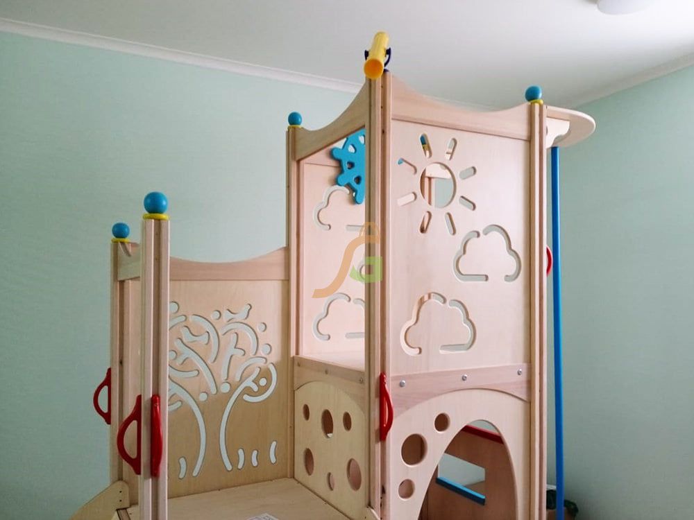 Современных детишек трудно чем-то удивить, но мы не стоим на месте - разрабатываем новые идеи. На этот раз хотим порадовать вас уникальными домиками, которые устанавливаются в квартире, на террасе, в ресторане, гостинице или детском саду. Модель под названием IgraGrad 4 оборудована игровыми элементами, без которых дети не могут обойтись. Среди них есть необычные новинки: лесенка-скалодром; шест для спуска с домика.
