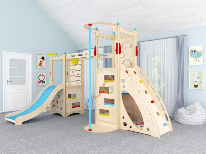 Прекрасное настроение и бодрый настрой ребёнка – заслуга игрового комплекса. Он заменит планшеты, телефоны, кучу бесполезных игрушек. Данная конструкции – эффективный способ, чтобы познакомить детишек со спортивной атрибутикой и прививать им любовь к спорту, ролевым играм.
