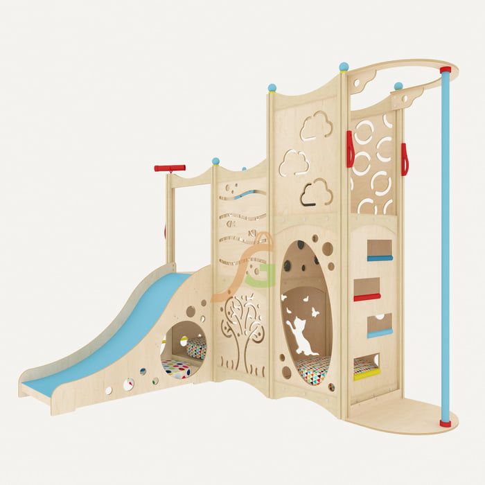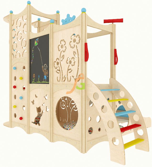 Представленная функциональная конструкция идеально подходит для многодетной семьи и для обустройства игровой зоны в общественных местах. Она предусмотрена для времяпрепровождения сразу нескольких человек возрастом от 2 до 7 лет. Многоуровневая конструкция в виде домика станет заветным местом, где можно поиграть, отдохнуть, уединиться и даже почувствовать себя звездой, стоящей на сцене.