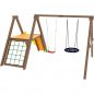 Для производства детской площадки тщательно подбиралась древесина северных хвойных пород. Чтобы материал не утратил своих эстетических качеств и прослужил детворе много лет, он обрабатывается безопасной защитной пропиткой на водной основе. Она придаёт дереву красивый оттенок и подчёркивает его природную текстуру.