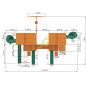 Присутствует качельный модуль с пластиковыми одиночными качелями и кубельковыми качелями для детей от одного года.