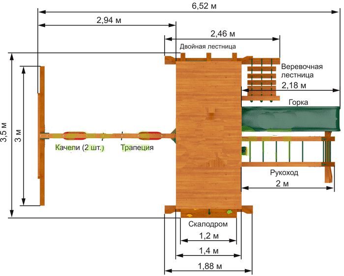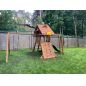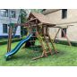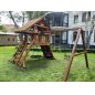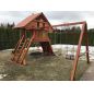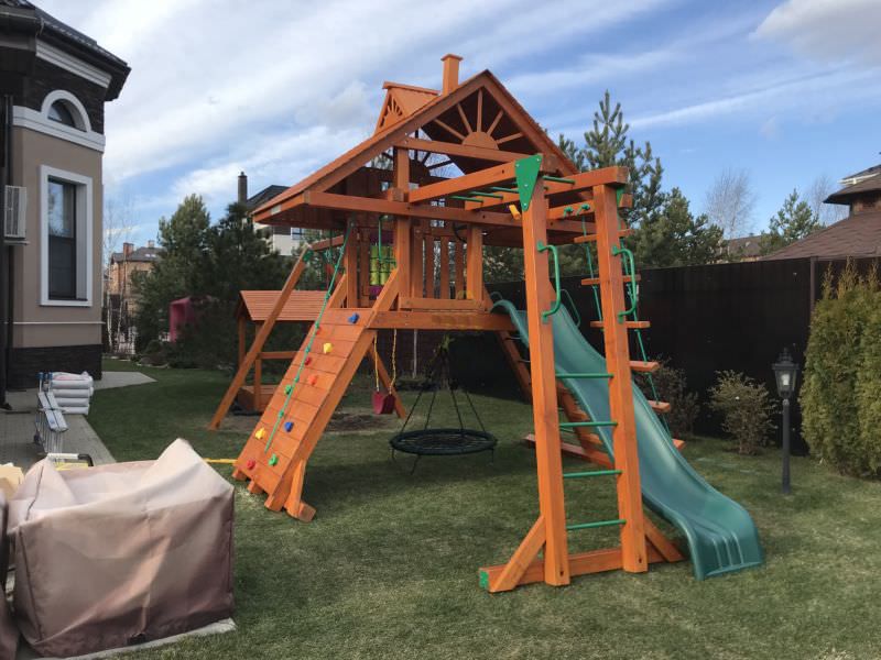 Детская площадка выполнена из дерева. Экологически чистый материал не несёт вреда здоровью. Специальное покрытие делает конструкцию надёжной и долговечной.