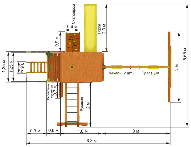 Здесь присутствует и дополнительная атрибутика: штурвал, бинокль, верёвочная лестница. Мальчишки с удовольствием поиграют в пиратов или спасателей. Если ребята не могут взобраться на «палубу», то им предлагается воспользоваться многоступенчатой лестницей.