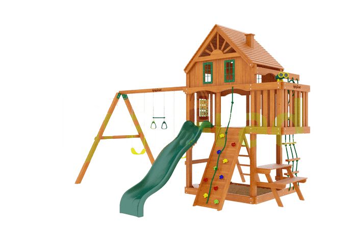 После активных игр хочется немного отдохнуть. Для этого детская площадка из дерева комплектуется качелями, горкой, доской для игры в «Крестики-нолики», лавочкой, столиком, песочницей.