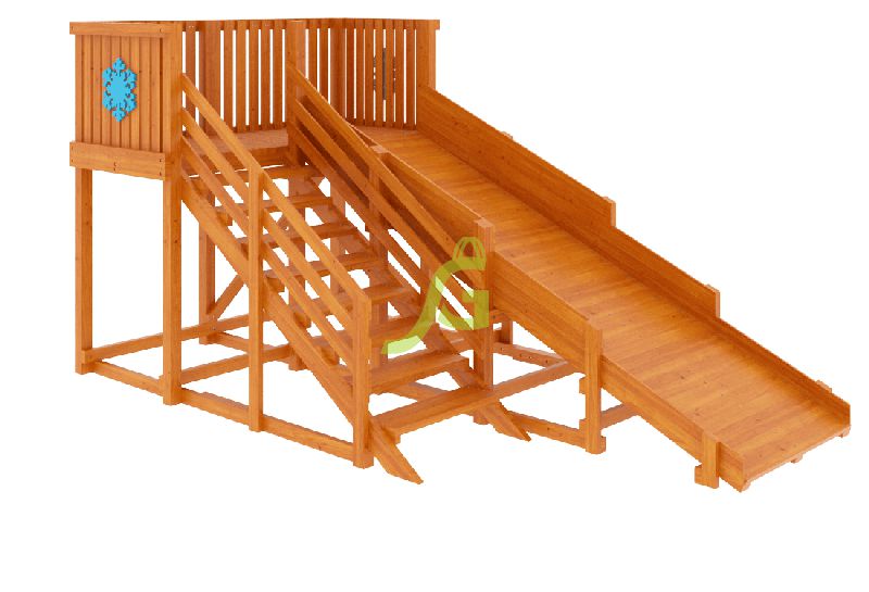 Дополнительные балки делают модуль устойчивым, безопасным и надёжным. Поэтому малыши могут резвиться, катаясь с горки в снежную или морозную погоду. Крепёжные элементы утопают в деревянных элементах, что предотвращает сцепление верхней одежды с саморезами. Родители могут без опаски отпускать детишек отдыхать и тренироваться, потому что они будут находиться в окружении безопасных элементов игровой конструкции.