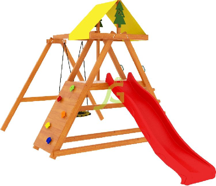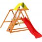 Площадка состоит из скалодрома, горки и качелей. На ней одновременно смогут играть несколько детей, развивая силу, ловкость и получая массу положительных эмоций. Комплекс изготовлен из дерева, легко и быстро устанавливается. Все необходимое для сборки входит в комплект.
