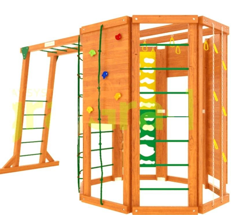 Спортивный игровой комплекс идеально подойдет для дачи или загородного дома. Все дети просто обожают активный отдых на свежем воздухе. Этот комплекс станет лучшей территорией для спорта и игр. Ребенок сможет заниматься и играть на ней сам или в компании друзей.