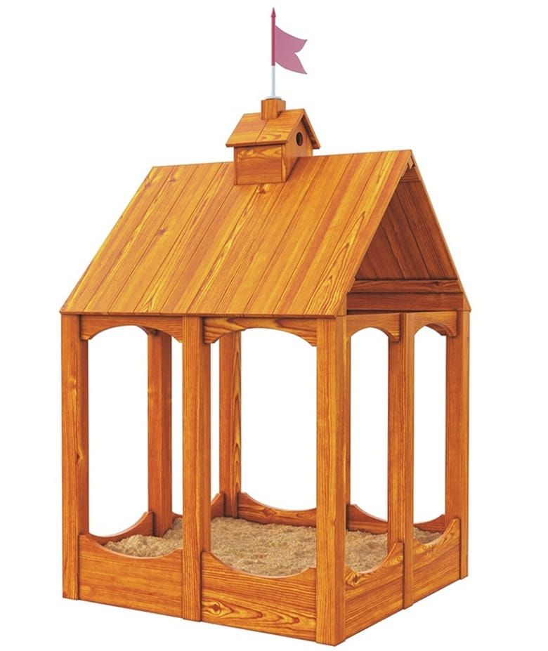 Детская деревянная песочница с тентом и солнцезащитным навесом изготовлена из качественной сертифицированной древесины, а ее габариты позволяют играть в ней одновременно нескольким детям. Песочница подходит для использования в любых климатических условиях.
