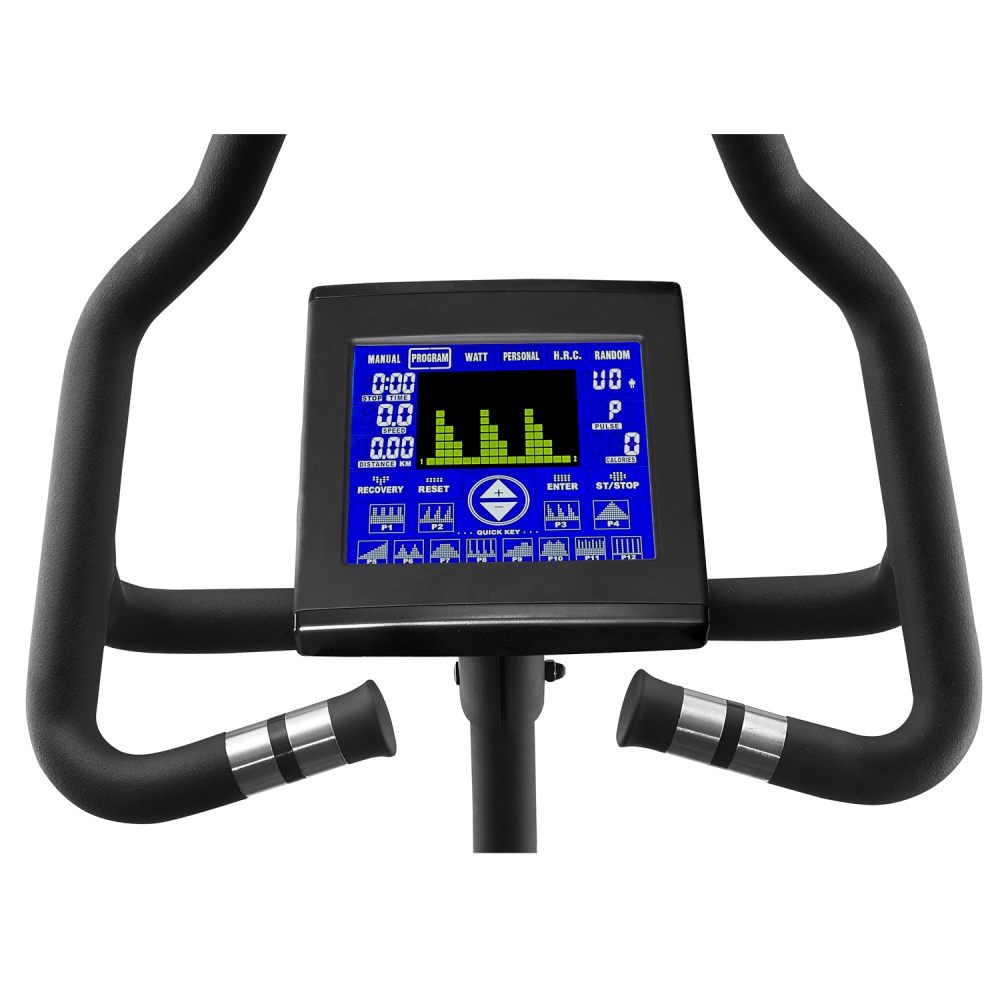 Вертикальный велоэргометр с утяжеленным маховиком и генераторной системой питания - не требуется подключение к сети 220В. Также преимуществами при выборе данного тренажера являются компактные габариты и возможность заниматься пользователям с весом до 150 кг.