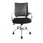 Кресло модели КР08 имеет удобную спинку из прочного сетчатого материала. Сиденье обито тканью чёрного цвета. Кресло в базовом варианте поставляется на качественных колесных опорах (роликах). Сидеть очень удобно - спинка повторяет контур спины, также сетчатый материал спинки эффективно отводит тепло тела.