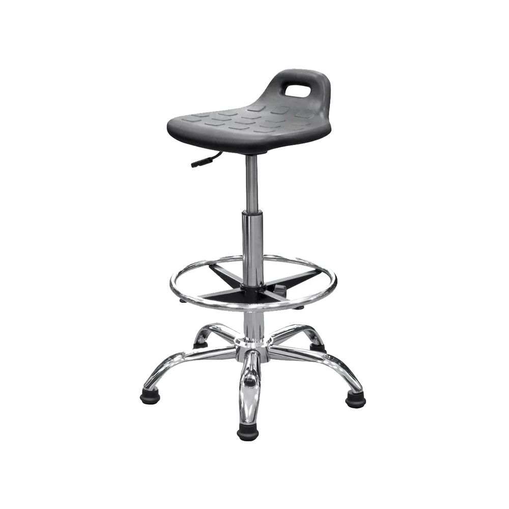 Табурет антистатический с полиуретановым сиденьем, на газ-лифте, модель Т11-В (А). Для обеспечения электростатической безопасности в конструкции табурета используется специальное полиуретановое сиденье, в материал которого добавлены антистатические материалы. Прямоугольное сиденье с отверстием для руки имеет размер - ширина 370 мм, глубина 350 мм, толщина 30 мм.
