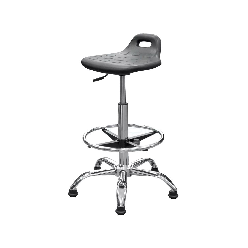 Табурет высокий с полиуретановым квадратным сиденьем Т11-В, газ лифт. В отличие от фанеры и/или пластика полиуретан это упругий (мягкий) материал - на нем комфортно сидеть. Каркас стальной с хромированным покрытием.
