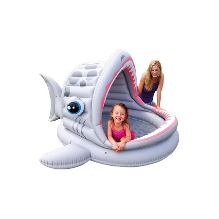 Детский надувной бассейн с навесом «Акула» Intex 57120 идеально подходит для детского и семейного отдыха. Вашему малышу обязательно понравится купаться в такой компании! Имеет надувное дно с удобным клапаном для быстрого слива воды.