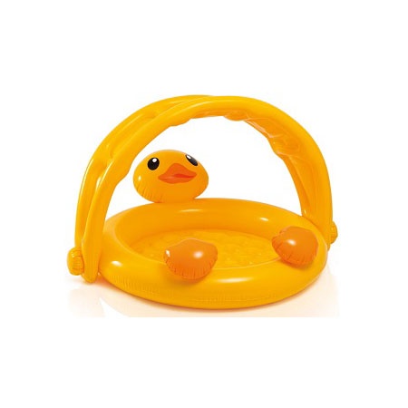 Детский бассейн "Уточка" Intex 57121 - отличный бассейн для Вашего малыша. Из-за необычной формы бассейн можно использовать и как детский бассейн, и как игровой центр. Надувной навес спасет Вашего малыша от палящего солнца, при желании его можно опустить. Бассейн выполнен в форме забавной уточки и имеет мягкое надувное дно. Изготовлен из прочного винила (ПВХ).