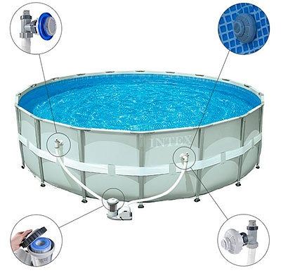 Фильтрующий насос подключается к штатным системам в бассейне Intex.
