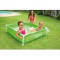 Детский каркасный бассейн квадратной формы зеленого цвета. Металлический каркас обеспечивает прочность конструкции. Чаша бассейна выполнена из высококачественного плотного двухслойного винила толщиной 0,50 мм (стенки) и 0,25 мм (дно). Для комфортного безопасного купания имеются мягкие накладки на горизонтальных перекладинах.