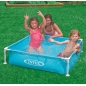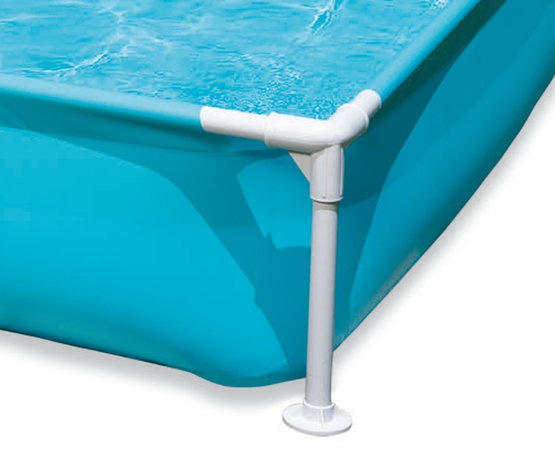 Детский каркасный бассейн квадратной формы голубого цвета. Металлический каркас обеспечивает прочность конструкции. Чаша бассейна выполнена из высококачественного плотного двухслойного винила толщиной 0,50 мм (стенки) и 0,25 мм (дно). Для комфортного безопасного купания имеются мягкие накладки на горизонтальных перекладинах.