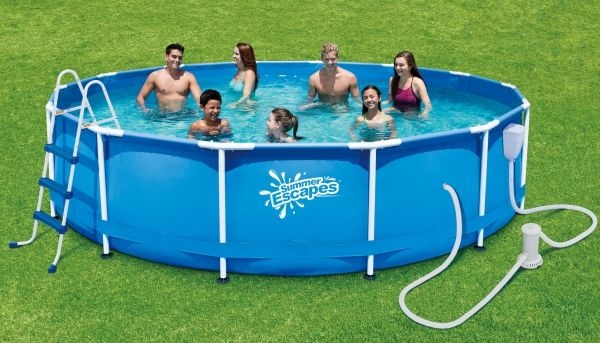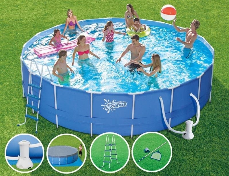 Сборный каркасный бассейн SummerEscapes Р20-1442-B в полной комплектации - с картриджным фильтр-насосом, лестницей, тентом, настилом, набором для чистки и скиммером.