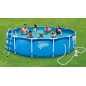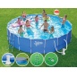 Бассейн выполнен из высококачественного трехслойного ПВХ. Стойки каркаса металлические с защитным покрытием. Простота конструкции позволяет легко собирать бассейн за 45 минут.