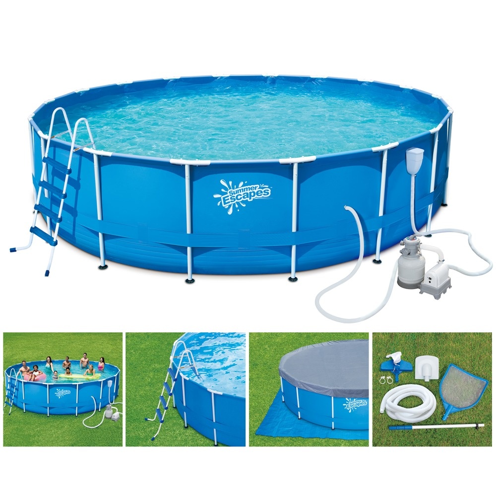 Практичный сборный каркасный бассейн SummerEscapes Р20-1852-S, обладает оригинальной конструкцией, которая позволяет собрать бассейн за 60 минут, без особых физических усилий. Песочный фильтр-насос производительностью 5100л/ч, диаметр шлангов 38 мм. Чаша бассейна изготовлена из высококачественного трехслойного ПВХ. Стойки каркаса металлические с покрытием. При сборке бассейна следуйте рекомендациям, указанным в инструкции.