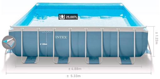 Новинка сезона 2017 года! Все бассейны серии Prism Frame имеют усиленный каркас! Квадратный сборный каркасный бассейн серии Intex Prism Frame прямоугольной формы в DELUXE комплектации с фильтр-насосом, лестницей, тентом и подстилкой.