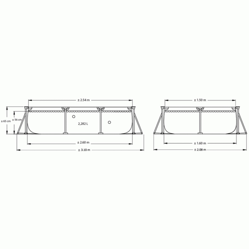 Процесс сборки бассейна до наполнения водой занимает 30 минут. Технология Super-Tough придает стенкам бассейна тройную прочность. Стенки сделаны из трех отдельных слоев - два слоя плотного винила и один - полиэстр для особой прочности. Также прочность бассейна Rectangular Frame Pool обуславливается его стальным каркасом, благодаря которому бассейн выдерживает большие нагрузки, в нем одновременно могут купаться несколько человек