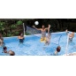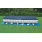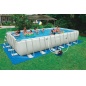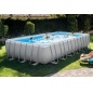 Большой сборный каркасный бассейн прямоугольной формы серии Intex Ultra Frame комплектации SUPER DELUXE с комбинированным фильтр-насосом, лестницей, тентом и подстилкой, набором для чистки, волейбольной сеткой.