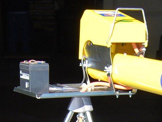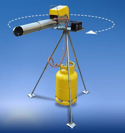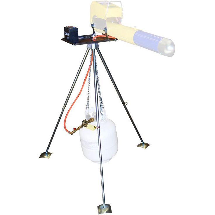 Стойка для установки отпугивателей "Zon EL08" на любой тип грунта для увеличения площади воздействия. Приподнимает гром-пушку над землей до 2,3 м. Это позволяет использовать её в режиме вращения — каждый выстрел поворачивает устройство на 40...60 градусов. Стойка увеличивает площадь защиты до 160 000 кв.м (16 Га, 0,16 кв. км, 1600 соток, 40 акров или более 22 футбольных полей). Снабжена площадкой для аккумулятора и цепным креплением для баллона с газом.