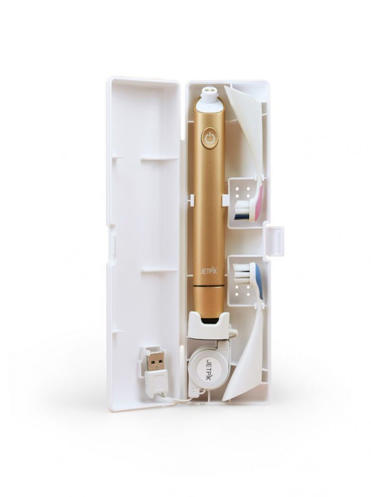 Зубная щетка Jetpik JP300 - уникальная модель здорового способа ухода за полостью рта. Теперь чистка зубов станет ещё эффективнее! Головка щетки выполнена в виде капли воды со специальным изогнутым наконечником, благодаря чему может легко достать до всех зубов. Движения щетинок позволяет устранить загрязнения за счёт совмещения круговых и выметающих движений. Корпус выполнен из металла и имеет треугольное сечение, благодаря чему удобно лежит в руке и не скользит.