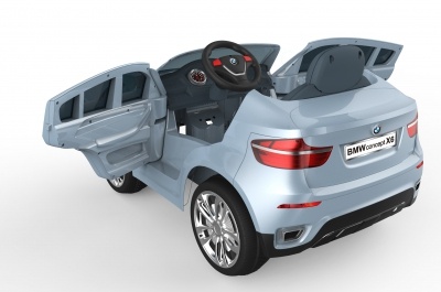 С помощью аудио разъема к машине можно подключить MP3-проигрыватель и воспроизводить музыку на встроенном динамике. В комплекте с машиной поставляется пульт дистанционного управления. Электромобиль BMW X6 предназначен для детей от 2 до 6 лет.