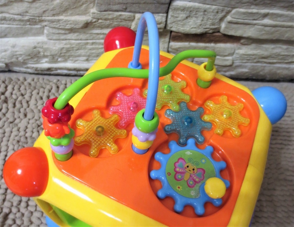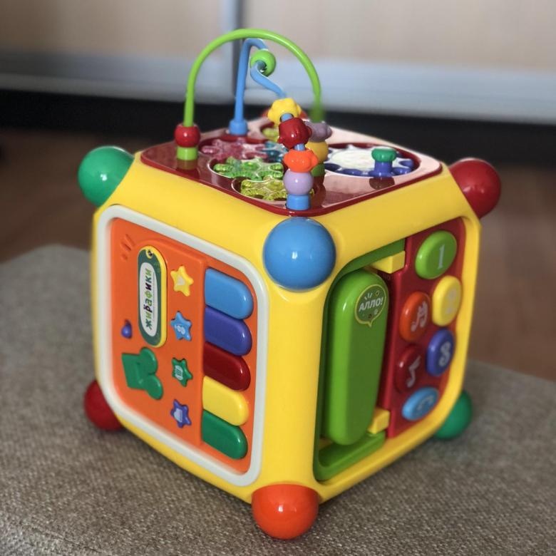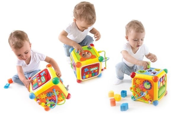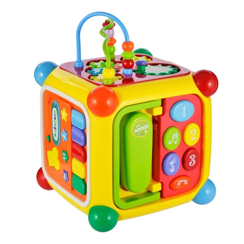 Мультикуб сочетает в себе сразу несколько игрушек и поможет сэкономить место для их хранения. Ребенку не будет скучно с развивающим центром – он всегда может выбрать новую сторону для игры. Не имеет острых углов и изготовлен из нетоксичного пластика, поэтому подойдет для деток начиная с 12 месяцев.