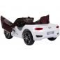 Стильный кабриолет с изящным дизайном и потрясающим функционалом. Белоснежный глянцевый кузов дополняет большая хромированная решетка радиатора, сдвоенные светодиодные фары и массивные колеса на дисках. Салон электрокара с роскошным кожанным сиденьем и оригинальным рулем с мультимедиа-кнопками. В наличии функция родительского контроля - пульт ДУ, работающий по технологии Bluetooth.