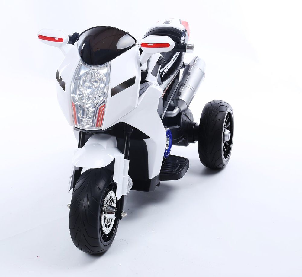 Электромотоцикл оснащен настоящими боковыми зеркалами, а плавные линии модели максимально передают дизайн спортивного мотоцикла. Мотоцикл имеет два варианта движения - вперед и назад. Предусмотрены звуковые и световые эффекты.