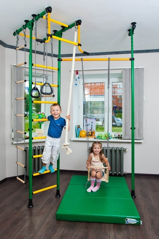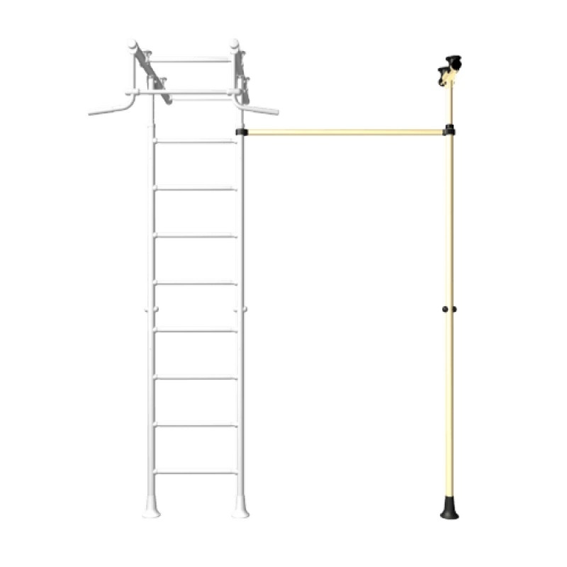 Стойка является дополнительным оборудованием, устанавливаемым на детский спортивный комплекс. Стойка пригодна для крепления других гимнастических снарядов, например колец, подвесной лестницы или трапеции. Металлические части конструкции имеют защитное лакокрасочное покрытие, пригодное для обработки дезинфицирующими веществами. Стойка устанавливается враспор, оберегая хрупкие гипсокартонные стены и облегчая возможное перемещение всего комплекса.