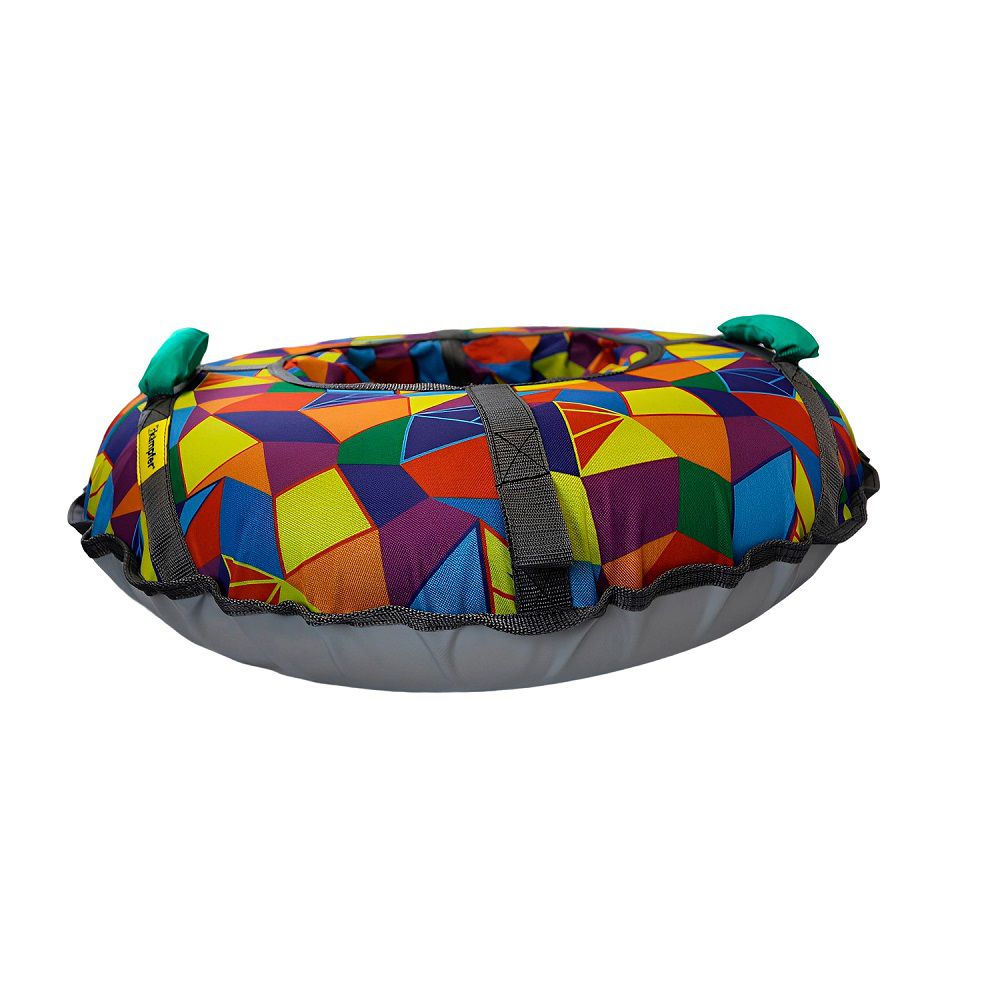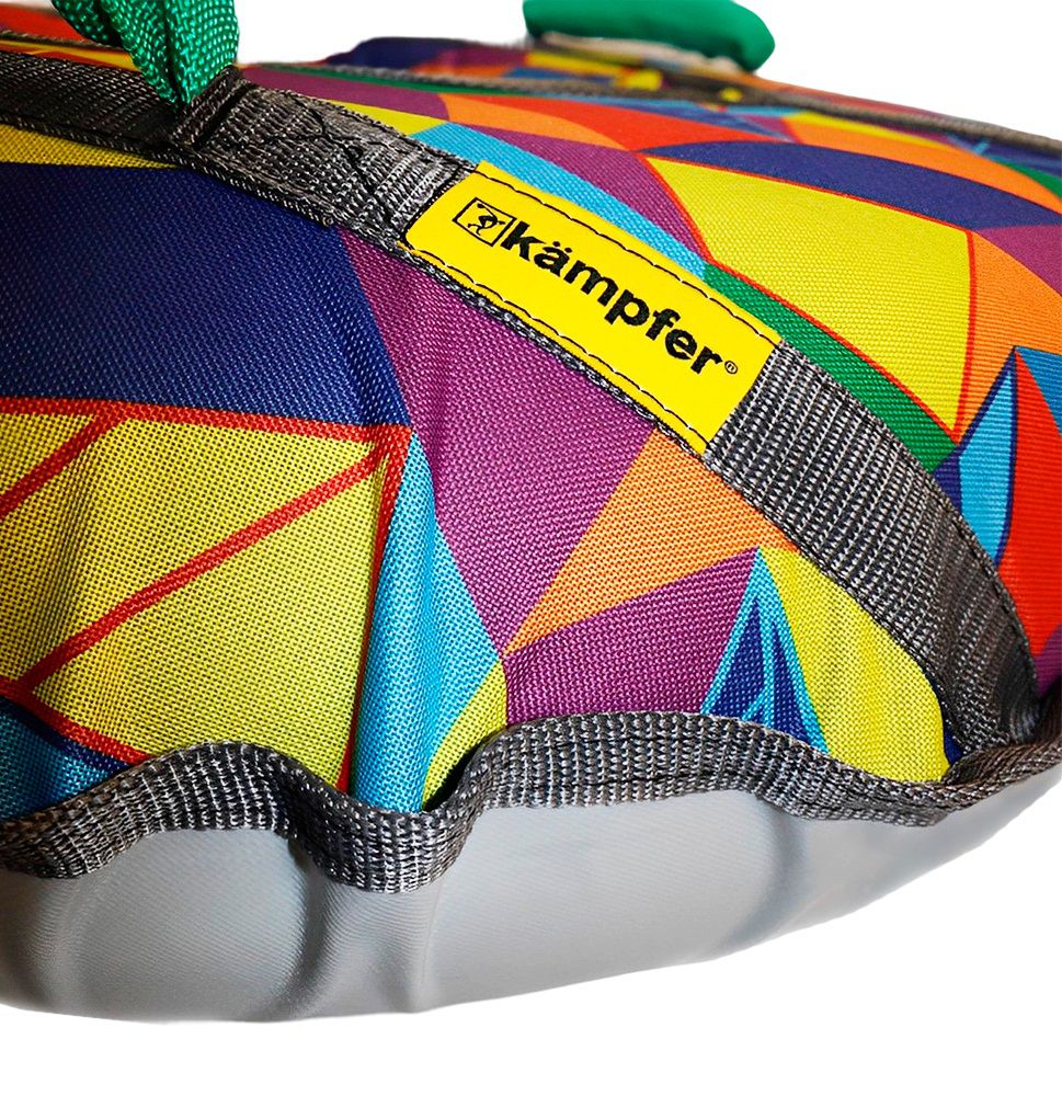 Тюбинг Kampfer Funny Joke с ярким мозаичным принтом. Для управления тюбингом выполнены удобные тканевые ручки. Для перемещения ватрушки в комплект входит буксировочный трос. Прочный каркас ватрушки сверху защищает износостойкая непромокаемая ткань Oxford. Нижняя часть отделана плотной тканью ПВХ для легкого скольжения во время скатывания с горки. Стропы для прочности прошиты двойной строчкой. Чехол закрывается на молнию, предохраняя внутреннюю камеру от попадания снега. Насос для тюбинга в комплектацию не входит и приобретается отдельно.
