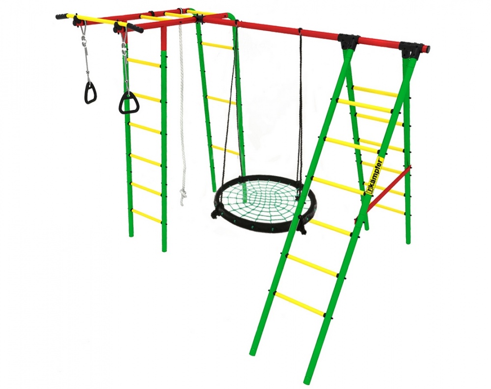 Спортивно игровой комплекс Kampfer Happy Child Plus принесет неоценимую пользу здоровью детей и обеспечит им правильное физическое развитие! Это прочная и устойчивая к нагрузкам конструкция, выполненная из качественных металлических сплавов. Предусматривает специальное антикоррозийное покрытие, которое противостоит образованию ржавчины и длительное время сохраняет цвета яркими. Спортивно-игровой комплекс предназначен для детей разного возраста. Шведская стенка, турник неподвижный, рукоход, канат, качели и гимнастические кольца – такая комплектация понравится каждому ребенку. Помимо этого, можно дополнить конструкцию и другим навесным оборудованием. Монтаж происходит с помощью бетонирования, поэтому обеспечивается высокая надежность и устойчивость. Это детский игровой комплекс помогает сохранить и укрепить здоровье ребёнка, а также исправить недостатки физического развития – в частности, сутулость, плоскостопие и другие проблемы.