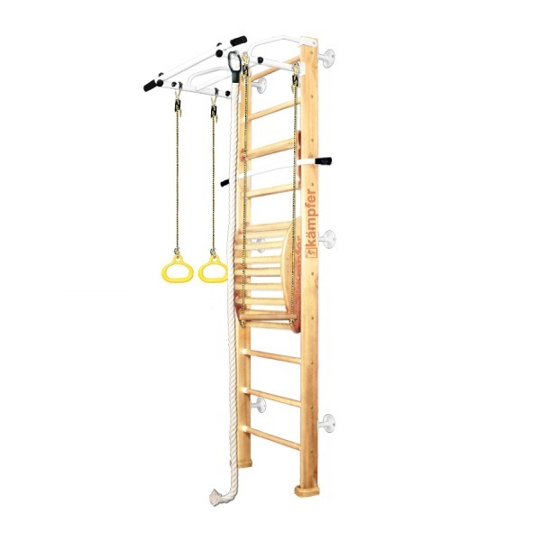 Шведская стенка Kampfer Helena Maxi Wall принесет неоценимую пользу всем членам семьи – от мала до велика! Это тренажерный комплекс, который включает в себя не только шведскую стенку, но также тренажер для спины и различное дополнительное оборудование. Пользователь получает удобные условия для занятий спортом на ограниченной по размерам площади. При этом установка или демонтаж шведской стенки не доставляет хлопот – все работы проходят легко и быстро. В качестве основного материала шведской стенки выступает натуральное дерево, которое радует своей прочностью, экологичностью и природной красотой. Допустимая нагрузка на конструкцию составляет 120 кг.
