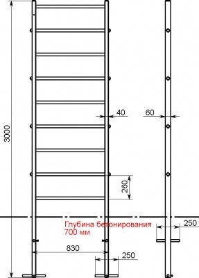 Для уличной установки предназначена металлическая шведская стенка Kampfer KSW professional Outdoor. Благодаря прочной металлической конструкции – изделие выдерживает высокие нагрузки и противостоит негативным внешним факторам. От воздействия влаги и образования коррозии на всех металлических элементах имеется специальное антикоррозийное покрытие. Монтаж осуществляется классическим способом – каждая стойка шведской стенки вкапывается в землю на глубину 70 см и бетонируется или цементируется. Полностью сборно-разборная конструкция обеспечивает удобство в процессе эксплуатации, так как при необходимости шведскую стенку можно быстро демонтировать.