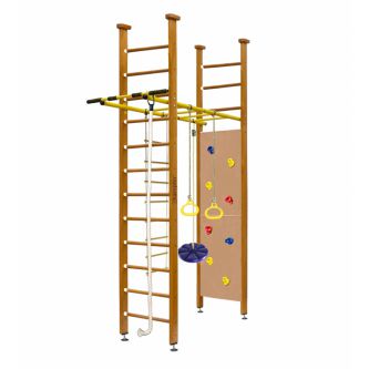 Домашний спортивный комплекс Magic Trick. Конструкция выполнена из натурального дерева стойки и ступени, все края деталей немного скруглены обеспечивая большую безопасность для ребенка.