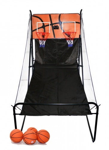 А появление такого баскетбольного комплекса дома обеспечит всю семью веселым и увлекательным досугом. Соревновательный элемент в такой игре будет интересен как для взрослых, так и для детей. Баскетбольный щит и корзина изготовлены из прочных износостойких материалов, что обеспечивает долгую службу во время эксплуатации. В комплект входит баскетбольная стойка с большим щитом с двумя кольцами, электронным табло, защитной сеткой, четыре детских мяча и насос.