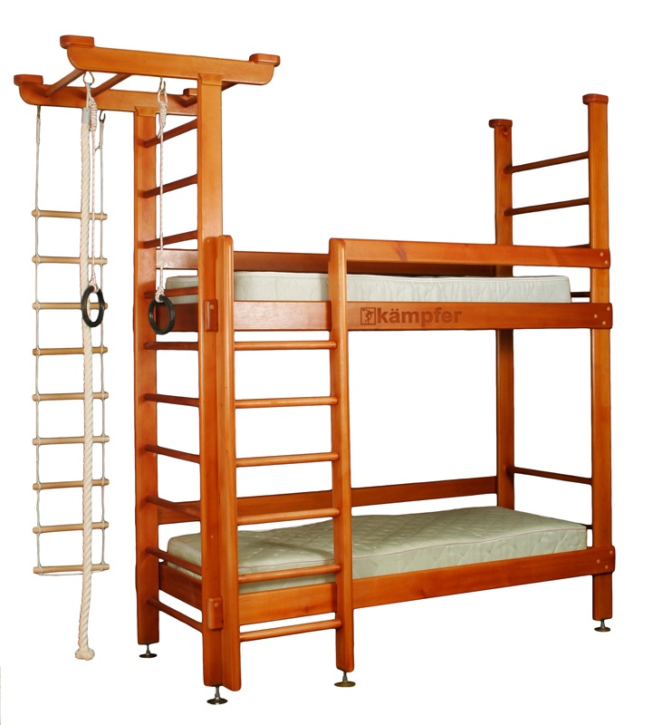 Детская cпортивная мебель Kampfer Two dream Конструкция выполнена из натурального дерева, все края деталей немного скруглены обеспечивая большую безопасность для ребенка.