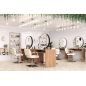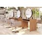 Всего одно зеркало обеспечивает сразу два рабочих места! Зеркальное полотно в форме идеального круга, надёжный устойчивый столик из ЛДСП толщиной 32 мм, вместительные столешница и полки для инструментов, мощные металлические подножки с накладками из нержавеющей стали, регулируемые опоры и возможность оборудовать скрытые розетки для электроинструмента.