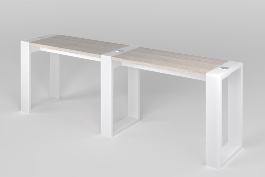 Двухместный маникюрный стол Matrix предназначен для одновременной работы двух мастеров. В столешнице предусмотрены специальные отверстия для маскировки проводов.