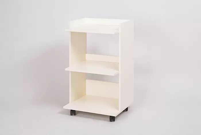 Косметологическая тележка СК-02 разработана для размещения оборудования и инструментов косметологов и мастеров, работающих в салонах красоты. Модель изготовлена из прочного и износостойкого ЛДСП. Конструкция представляет собой тумбу с тремя открытыми полками. Тележку можно легко передвигать благодаря бесшумным прорезиненным колесам.