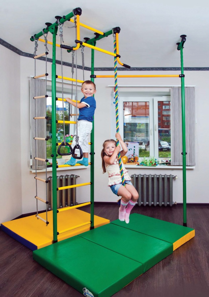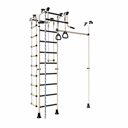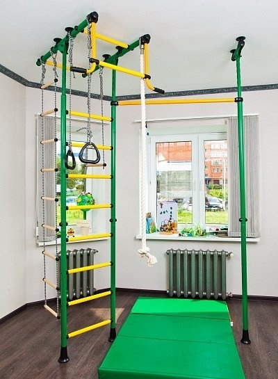 Детский спорткомплекс ROMANA Карусель Меркурий-1 состоит из шведской стенки, турника и стойки с перекладиной. Можно также дополнительно установить такое навесное спортивное оборудование, как канат, трапеция и гимнастические кольца, а также веревочную лестницу. Основа шведской стенки выполнена из металла с антикоррозийным покрытием, а ступени имеют массажную поверхность. Крепление детского спортивного комплекса осуществляется между потолком и полом – по методу враспор. Конструкция легко собирается и устанавливается, а при необходимости её можно быстро разобрать и закрепить в другом месте. Еще одно преимущество детского спорткомплекса – это его яркий дизайн, который побуждает детей заниматься спортом.