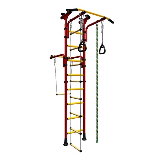 Конструкция комплекса ROMANA Карусель Олимпиец-1 предназначена специально для физического развития и активного досуга детей. При своих компактных габаритах, детский спортивный комплекс обладает высокой функциональностью. Для такой конструкции можно приобрести дополнительное навесное оборудование, организовав идеальный спортивный уголок в детской комнате. Комплекс представляет собой сборно-разборную металлическую конструкцию. Крепится враспор между полом и потолком. В комплект входят такие дополнения, как турник подвижный, рама, веревочная лестница, трапеция, канат и кольца гимнастические. Дополнительно предлагаются наклонная доска, качели или трапеция.