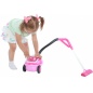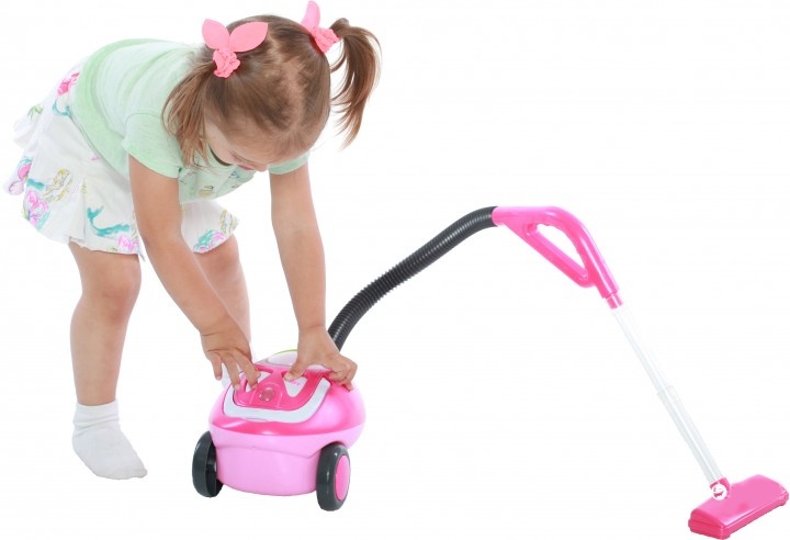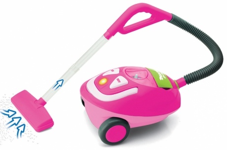 Пылесос также оснащен съемным контейнером для сбора пыли, который легко моется. Игрушку можно перемещать с места на место, взявшись за удобную откидную ручку или катя его на больших колесах, а гибкий шланг с большой насадкой не оставят "пыли и грязи" ни единого шанса скрыться.
