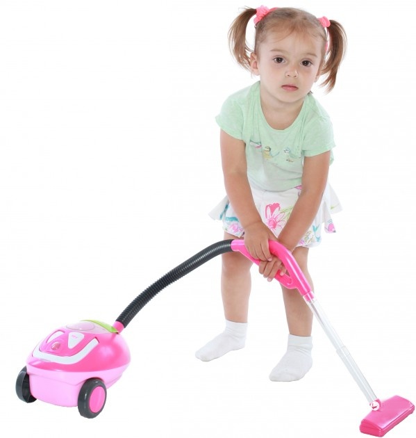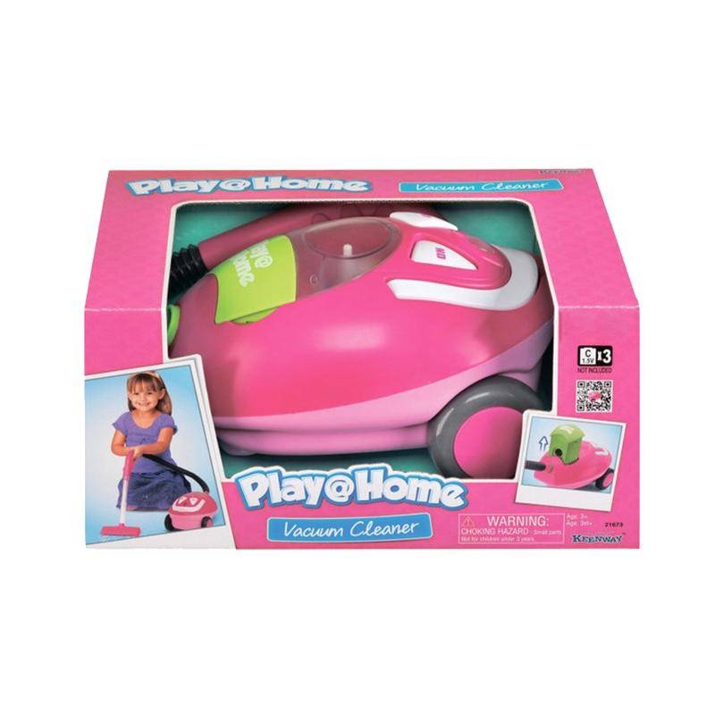 Игровой пылесос Play At Home выглядит и работает почти как настоящая бытовая техника. На ярком пластиковом корпусе игрушки расположены кнопки включения и выключения, лампочка, горящая во время работы, и прозрачное окошко, сквозь которое видна "грязь", представленная цветными шариками из полистирола. Во время работы игрушечного пылесоса активируется звуковой модуль, и шарики полистирола всасываются в контейнер.