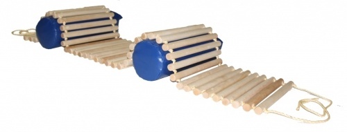 Дорожка выполнена из деревянных роликов, скрепленных прочным канатом.