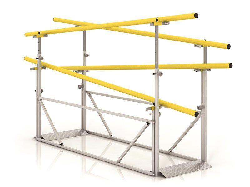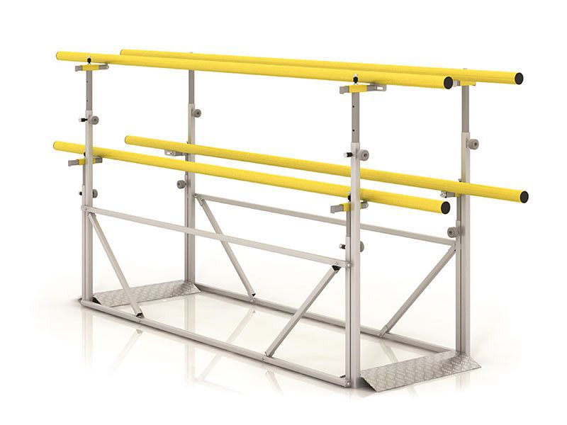 Поручни располагаются на двух уровнях, что дает возможность опираться одновременно плечевыми суставами и руками для поддержания вертикального положения и направления движения. Высота поручней и расстояние между ними устанавливается под рост и комплекцию пользователя. Для усложнения упражнений устройство можно использовать вместе с препятствием, набором скамеек и другими приспособлениями.